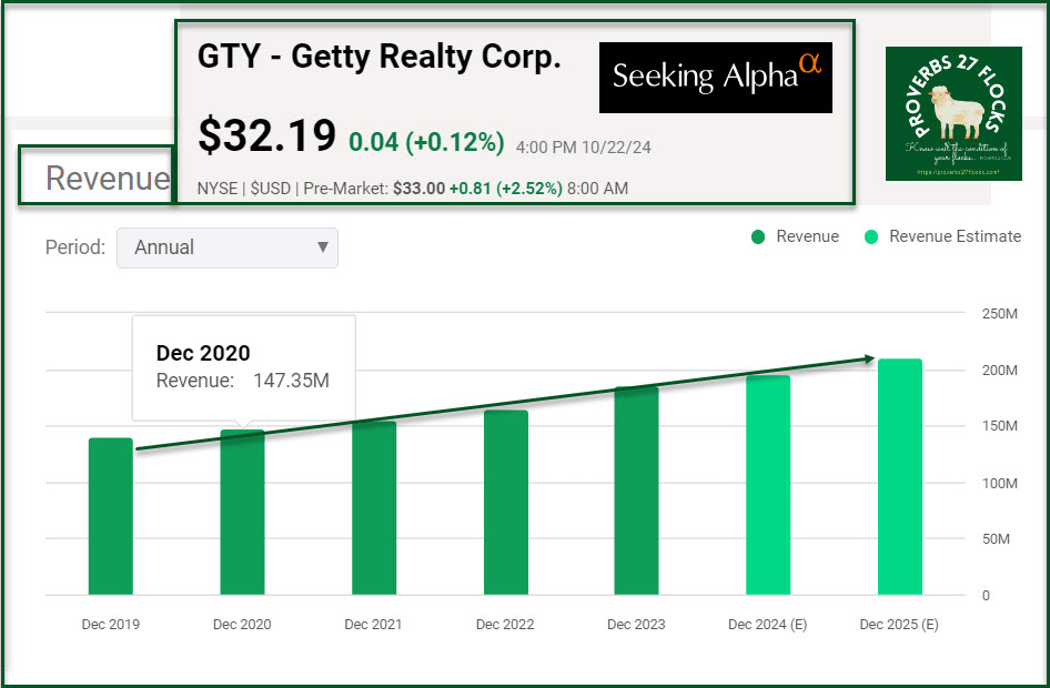 In the case of GTY, the 10-year total returns are 196%. Compare that to the SP 500 index which has a 10-year return of 189%. In other words, our investment in GTY does not sacrifice total returns for income. While it is true that ETFs VOO, and IVV have better ten year total returns than GTY, those gains are price returns. I want the income so that I can buy other investments or have income to satisfy our annual IRA RMD and to support QCD giving.