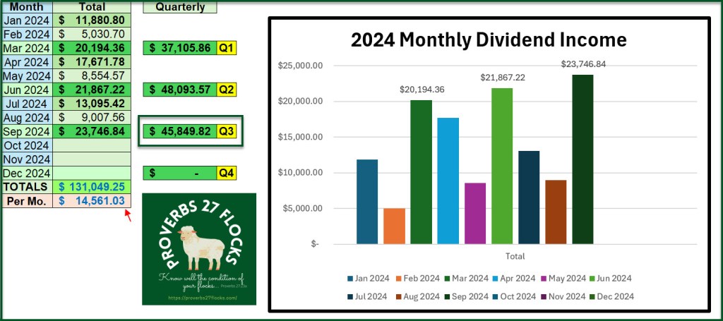 The first image shows our monthly dividend income. If you look at the final month of each quarter you will see growth. The April 2024 total is probably higher than what can normally be expected due to special one-time dividends.