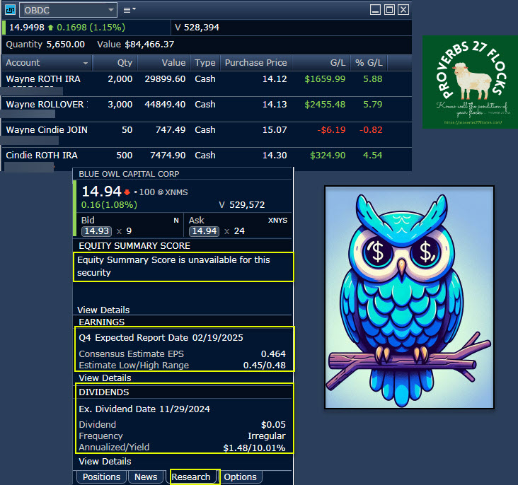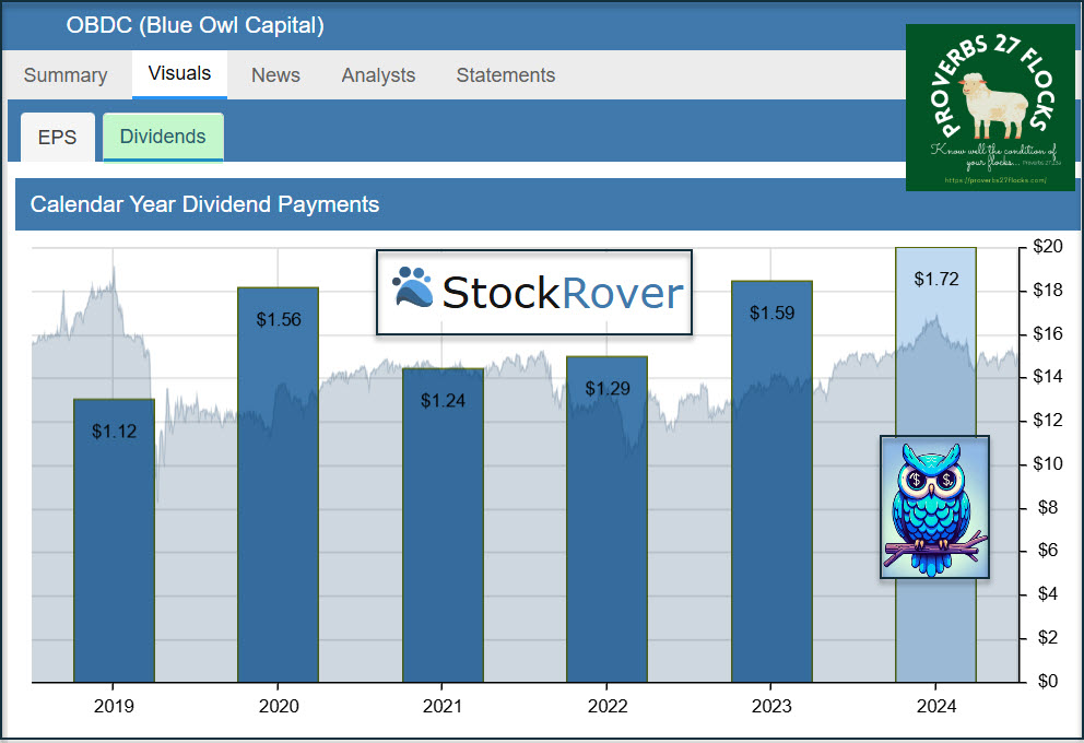 OBDC currently has about 390 million shares outstanding. If you take the $0.05 supplemental dividend and multiply it by the share count, OBDC’s “value” will shrink by a total of $0.42 per share – as shown in the following illustration. The same is true for the quarterly dividend. However, you are the recipient of the “loss” of the total value of the shares, so you have more feathers for your nest. The only other way to raise cash with OBDC is to buy shares at a low price and sell them at a higher price. That is too much work for my easy income strategy.