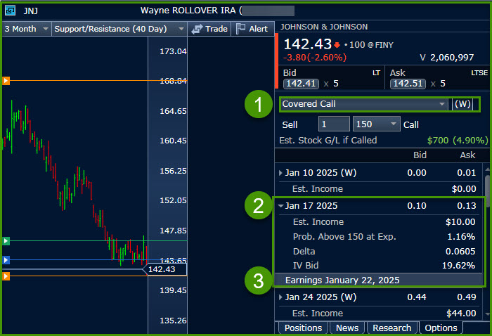 I won’t be entering any options trades until after January 22, 2025. I don’t want to risk selling my shares at a price that is too low. If there is a good earnings report, and the price spikes up, I will be ready to enter a covered call trade.