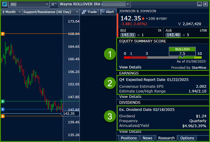 I like the ATP view that gives me three key pieces of information: the Equity Summary Score, Earnings, and Dividends. Always compare expected earnings with the dividend. The earnings should be greater than the dividend by a healthy margin. (Pun intended!)