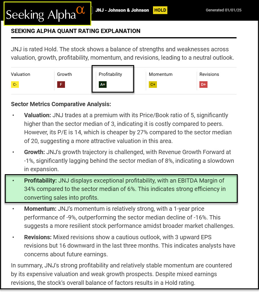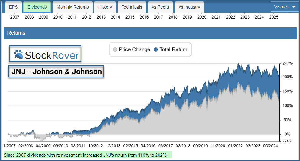 I look at Stock Rover to see total returns. Although JNJ’s ten-year returns are lacking, I think it is now time to take a small bite of this large-cap healthcare giant.