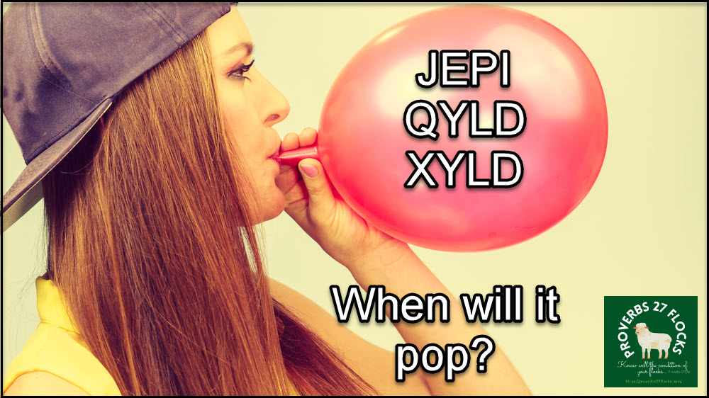 Yes, Dino, I do have thoughts and have written about this in a couple of posts. ETFs like JEPI, QYLD and XYLD have some unique risks. (Disclaimer: I owned 200 shares of JEPI in 2023; I owned shares of XYLD from 2021 through early 2023 and broke even after dividends; I owned 1,200 shares of QYLD from 2021 through 2023 and suffered a net loss of $3,649 even after dividends.)