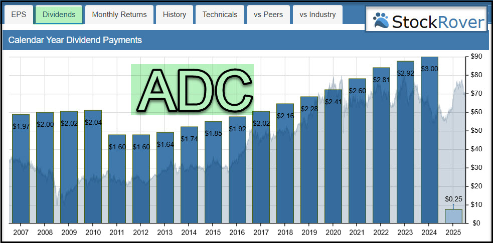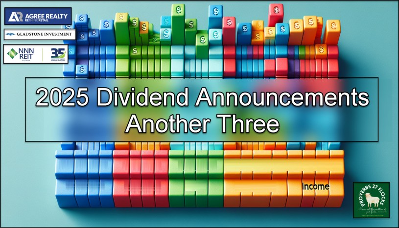 Our holdings in ADC are small in comparison with other REITs. I did ROTH conversions in 2024 to move NNN shares from my traditional IRA to my ROTH. Therefore, the dividends on 600 of the shares we hold are tax-free this year and forever more. Cindie has 100 shares of NNN in her ROTH IRA as well.