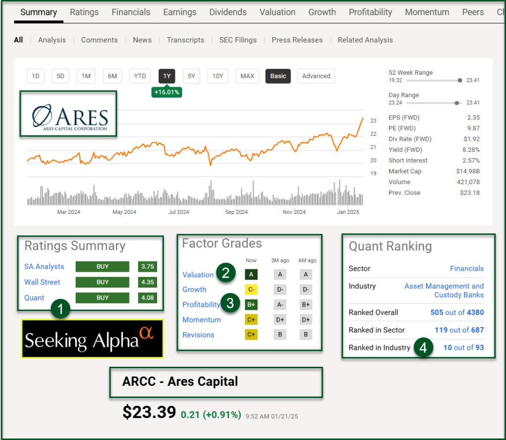 A solid QUANT rating on Seeking Alpha. Not only that, but the Seeking Alpha authors and Wall Street all rate ARCC as a buy.