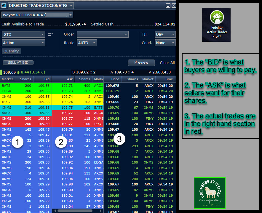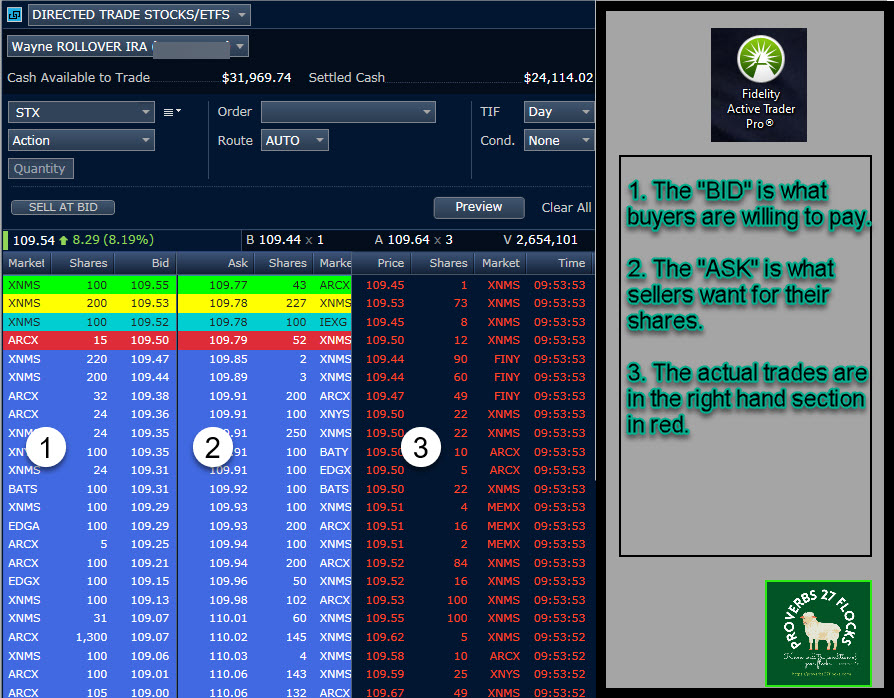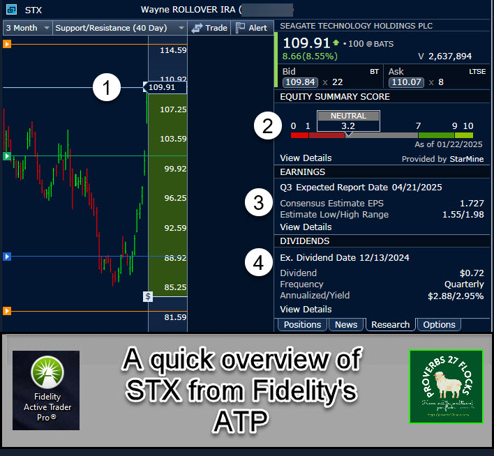 Another handy tool is Fidelity’s Active Trader Pro. It is an easy tool to master. Some of the features include…some key data points like the current share price, the ESS, Earnings and Dividends information.