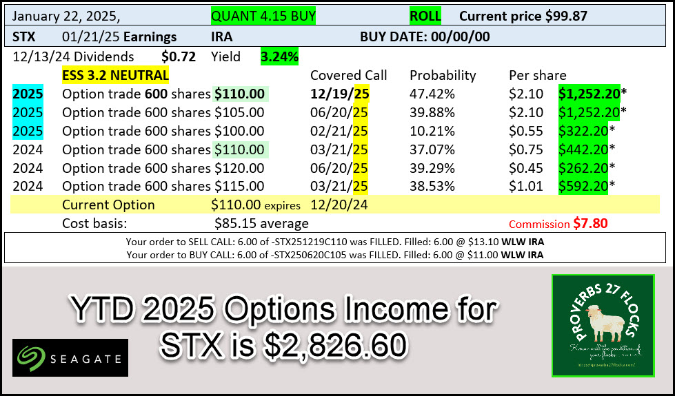 Finally, ETFs are often available for trading covered call options and cash covered puts, but they are very limited for weekly options trades. I want to have tighter control over the potential income from options trades. That is one reason I invest in stocks like STX (Seagate Technology Holdings plc).