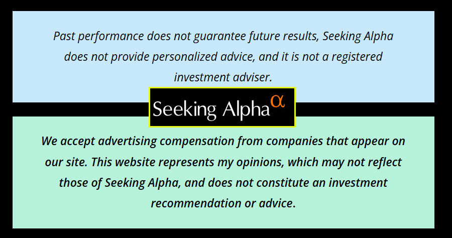 We accept advertising compensation from companies that appear on our site. This website represents my opinions, which may not reflect those of Seeking Alpha, and does not constitute an investment recommendation or advice.