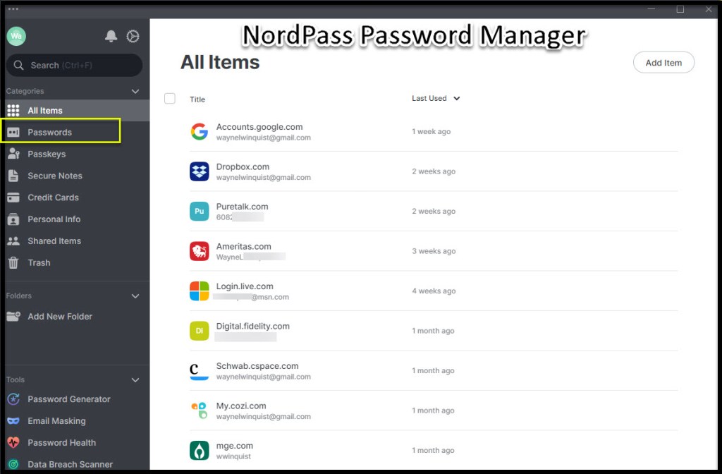 With this in mind, I have four posts planned, but I want to handle the most important one first: PASSWORDS. I have two password managers. They came with subscriptions to Dropbox and to the NordVPN that I use to connect my laptop to the internet. Both of them are locked, so you need a master password to get at the passwords in either password manager.