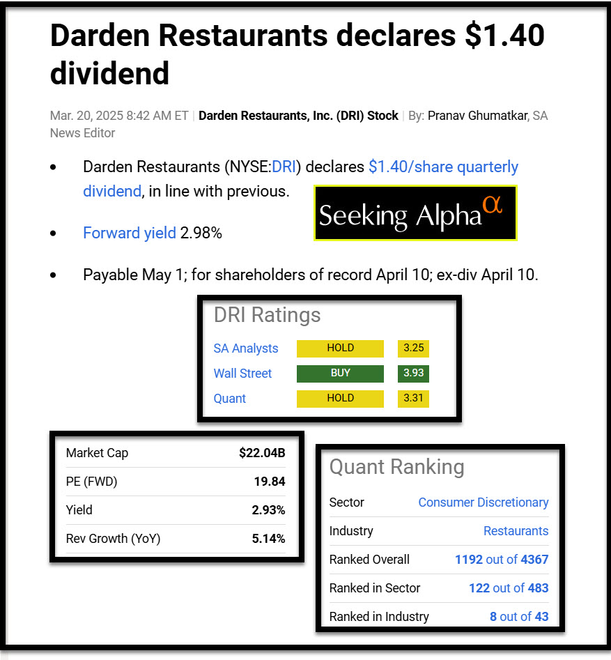 Even DRI declared a dividend, but it wasn’t an increase. Every little bit helps. I also trade covered call options on our 100 DRI shares.