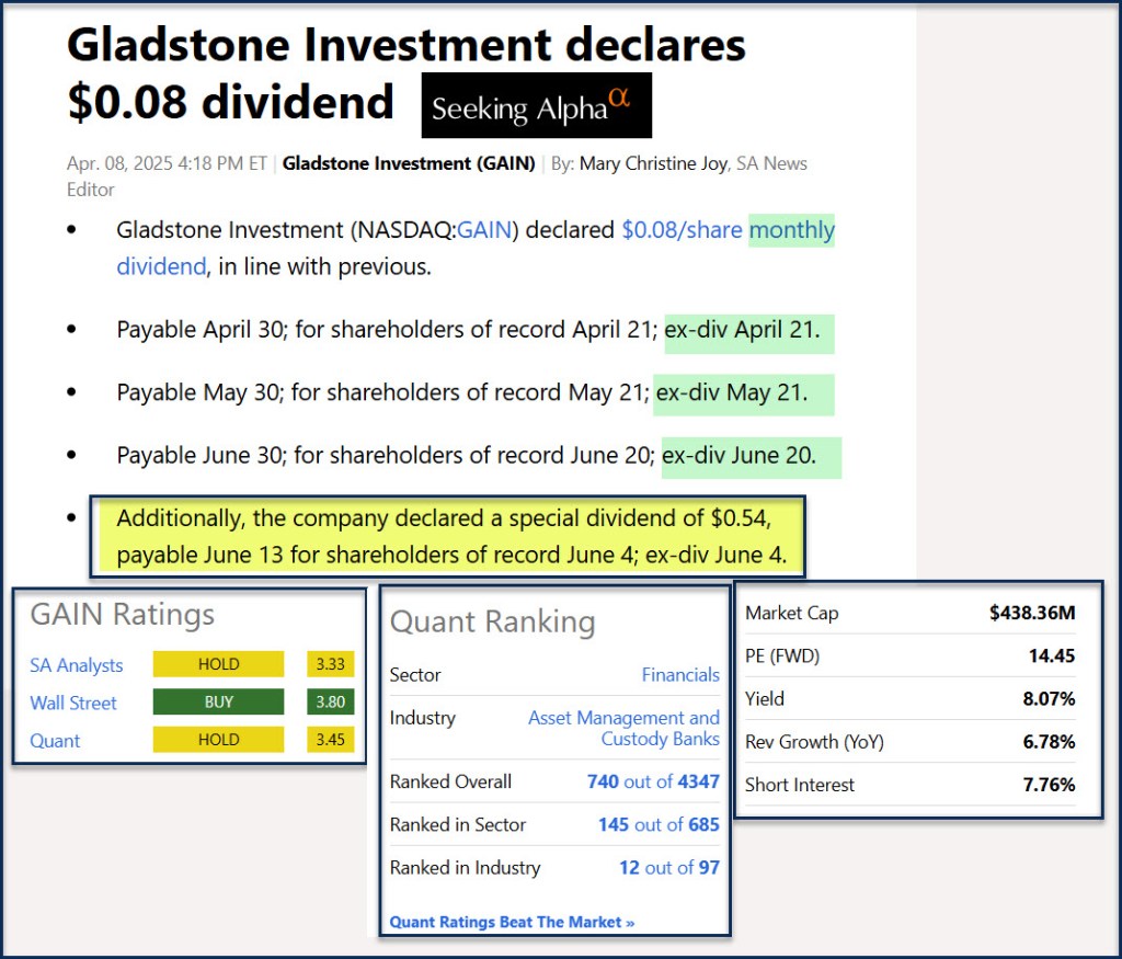 GAIN is a BDC and operates in the Financial Sector. The specific industry within that sector is “Asset Management and Custody Banks.”