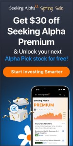 I like sales if they are a good value. Seeking Alpha has a Spring Sale offer that runs from April 27th to May 11th. The Sale Offer includes Premium for $269, with a 7-day free trial. In addition, SA is offering the Next Alpha Pick – FREE! You may want to wait until April 27th if you are interested in the Next Alpha Pick.