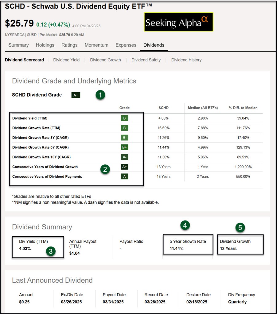 I also bought another 200 shares of SCHD yesterday. This brings our total SCHD holdings to 4,800 shares. Our grandchildren also own shares of SCHD in their UTMA accounts. I like SCHD because it has a history of paying a growing dividend. The 5 Year Growth Rate is 11.44% according to Seeking Alpha.