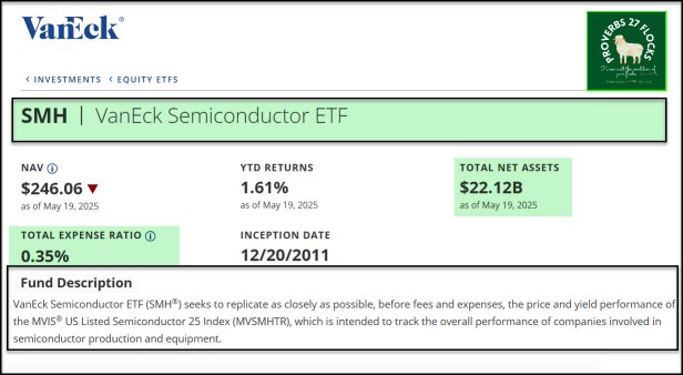 A friend (Paul) asked me what I thought of SMH (VanEck Semiconductor ETF). He said, “I wondered what your thoughts were on the VanEck Semiconductor ETF (SMH). Have you looked at it previously? Given the big AI push, I believe having some semiconductor investments would be good. I hadn’t heard of this one before.”