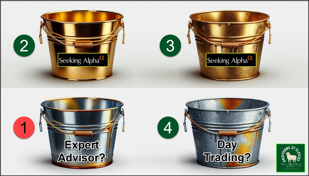 The final bucket is to spend a lot of time and energy diving into technical analysis, watching the momentum of individual investments, and buying/selling investments weekly or even daily. This is a bucket with high risk. It could tip over and you would have a mess.