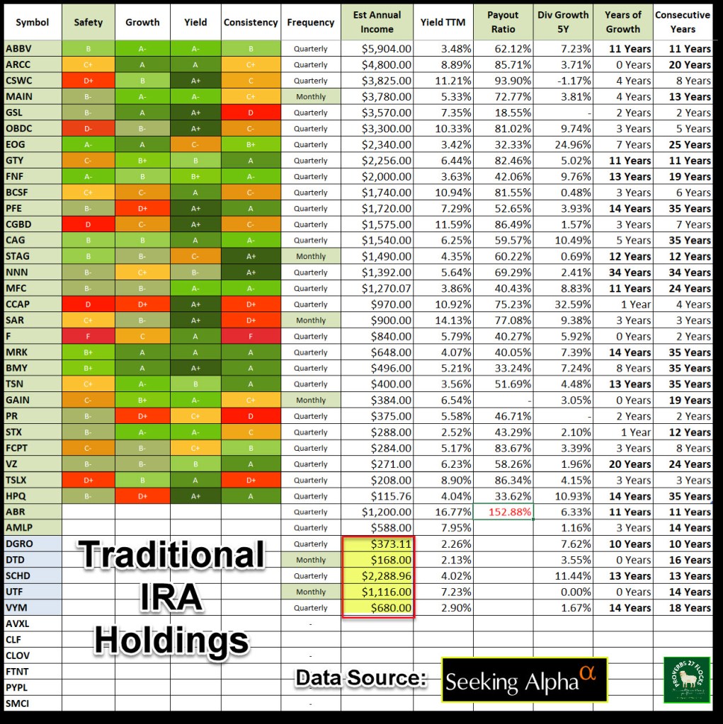 The “Estimated Annual Income” for my traditional IRA is far more than the total shown by Seeking Alpha. It is better to use the numbers provided by Fidelity Investments for this metric. However, even Fidelity’s EAI numbers are lacking because of the way they handle dividend-paying investments in their model.