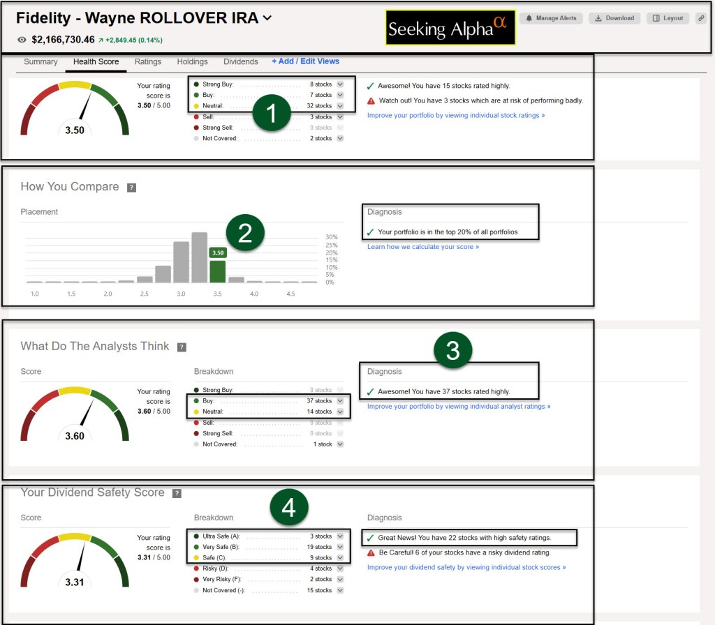 To get this view I have to have a Seeking Alpha subscription. I also have to be willing to link my Fidelity Investments accounts to Seeking Alpha. That makes many people nervous. However, the technology being used for the linking is not easily compromised, so I am comfortable with the link to gain the advantages of easy portfolio analysis.