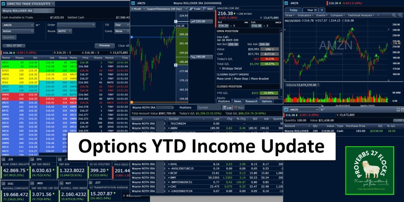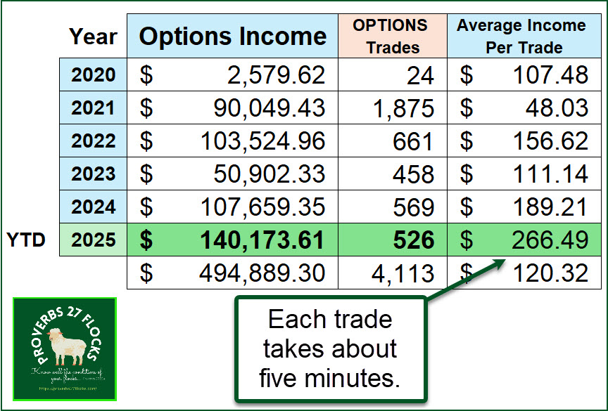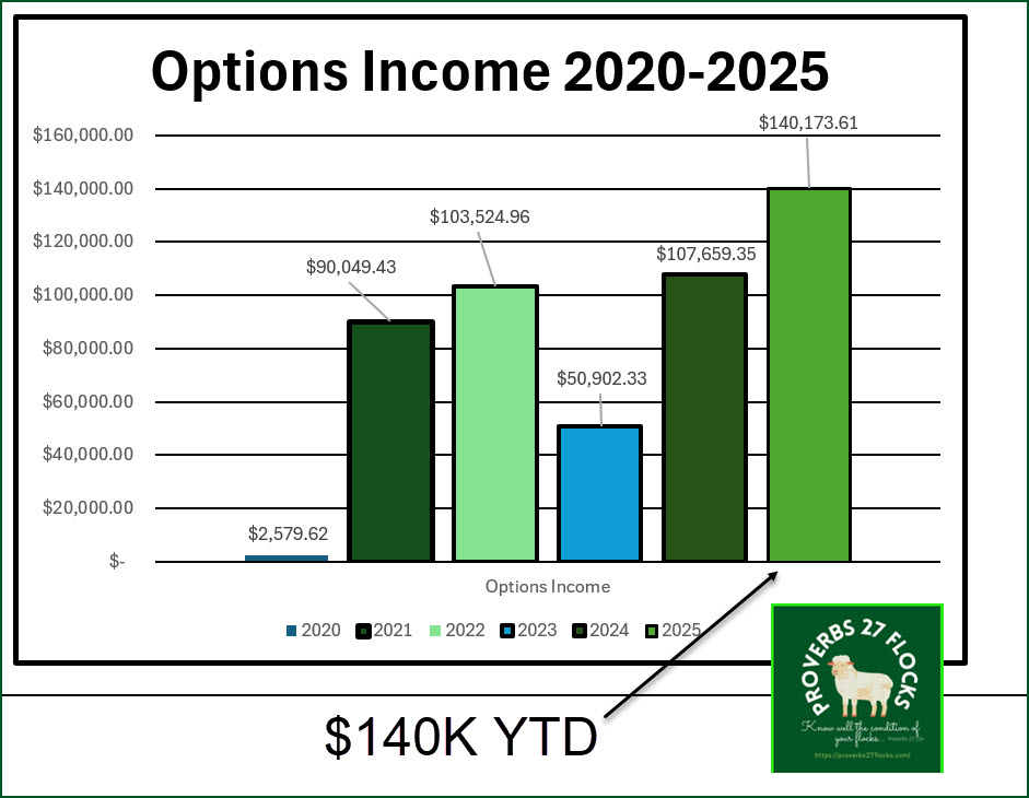 This month, with still a half of a year to go, I reached $140K in options income. What makes this even sweeter is that none of my shares have been called, so they continue to spill dividends into our accounts as well. I realize, however, that there is an increasing probability as the year unfolds for some of my options to be called. When that happens I will have cash to use for other investing purposes.