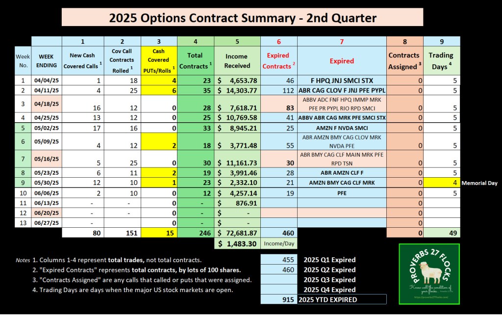 To put the $140K of options income into perspective, our YTD dividend income through the end of may is $60K. That means our total income, excluding Social Security and Cindie’s parttime pay as a baker, is over $200K so far this year.