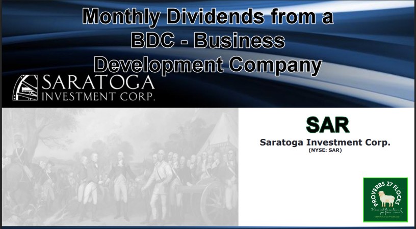 Yesterday I wrote a post that talked about CSWC – Capital Southwest. This investment is in the Financials sector with an industry focus of “Asset Management and Custody Banks.” That is a fancy way of saying it is a Business Development Company (BDC). Today’s investment update is for a similar investment: SAR (Saratoga Investment Corp.)