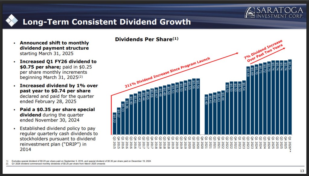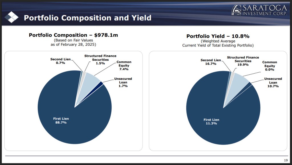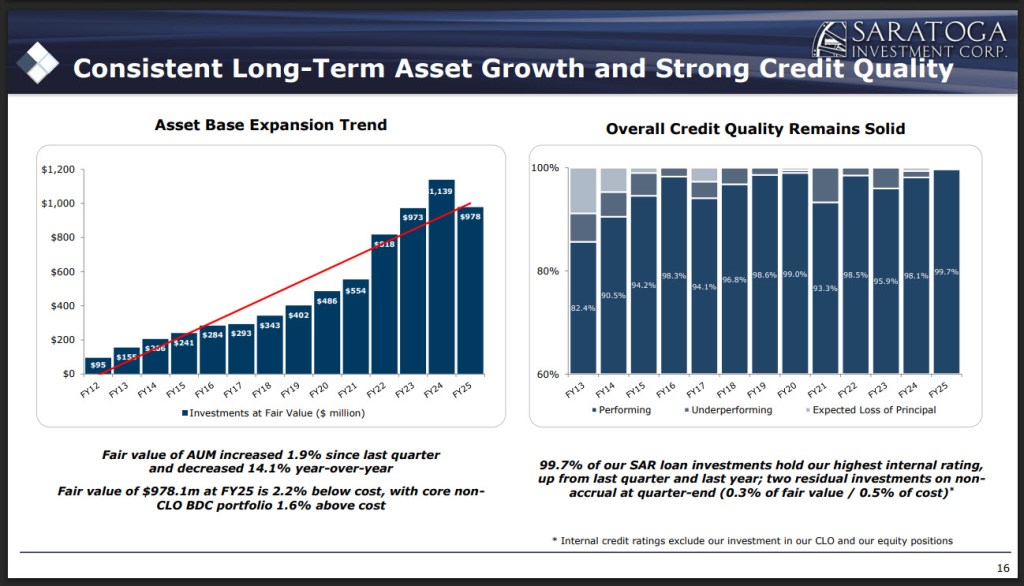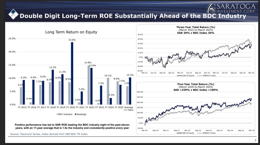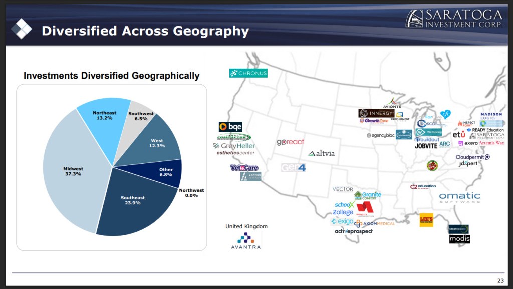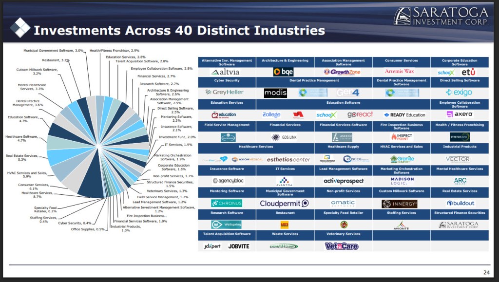 Like CSWC, SAR is in the Financials sector in the “Industry Asset Management and Custody Banks” industry. That means it is a BDC.