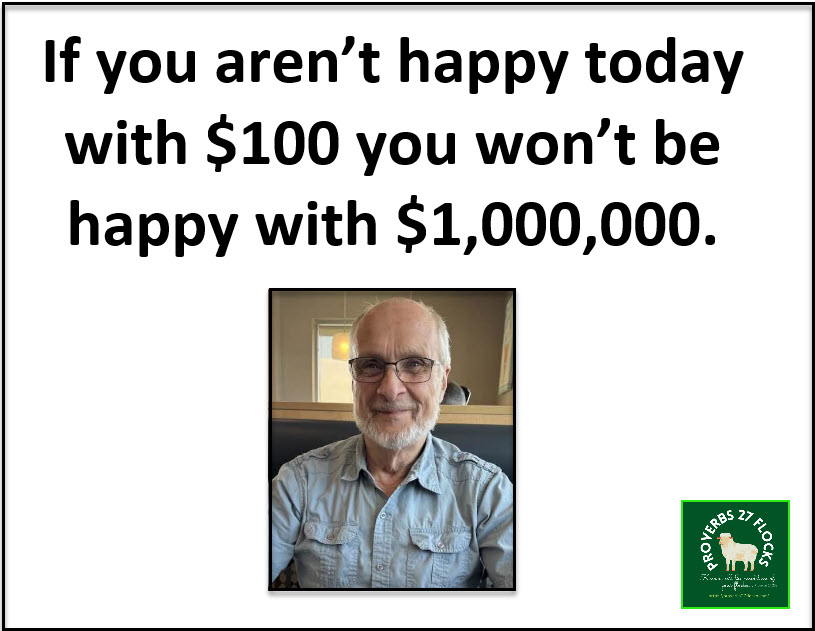 If you aren’t happy today with $100 you won’t be happy with $1,000,000. Having more doesn’t make anyone really happy or satisfied.