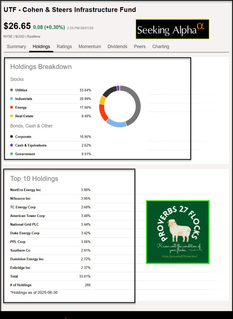 Finally, I would not convert UTF to my ROTH if I did not expect the shares to increase in value. Admittedly this won’t be a huge increase, as UTF is primarily a current income investment rather than a growth investment. However, with a yield of 7.0%, holding UTF is far better than cash in a money market account or in CDs.