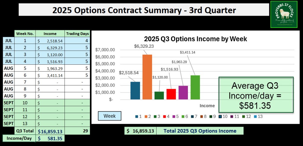 In June one of my blog readers, Bill, sent me a message that included the following: “On another note, I’ve been following your success with options trading—it’s impressive how you’ve grown that income stream while directing it toward meaningful family projects. I’ve read your articles and watched several of your videos, and I was wondering if you’ve ever outlined your best practices in a structured way. Something like a breakdown of your weekly review process, how you decide which stocks to add for contracts, how you log your trades, and if you’ve noticed certain days or conditions that work best for executing strategies.”