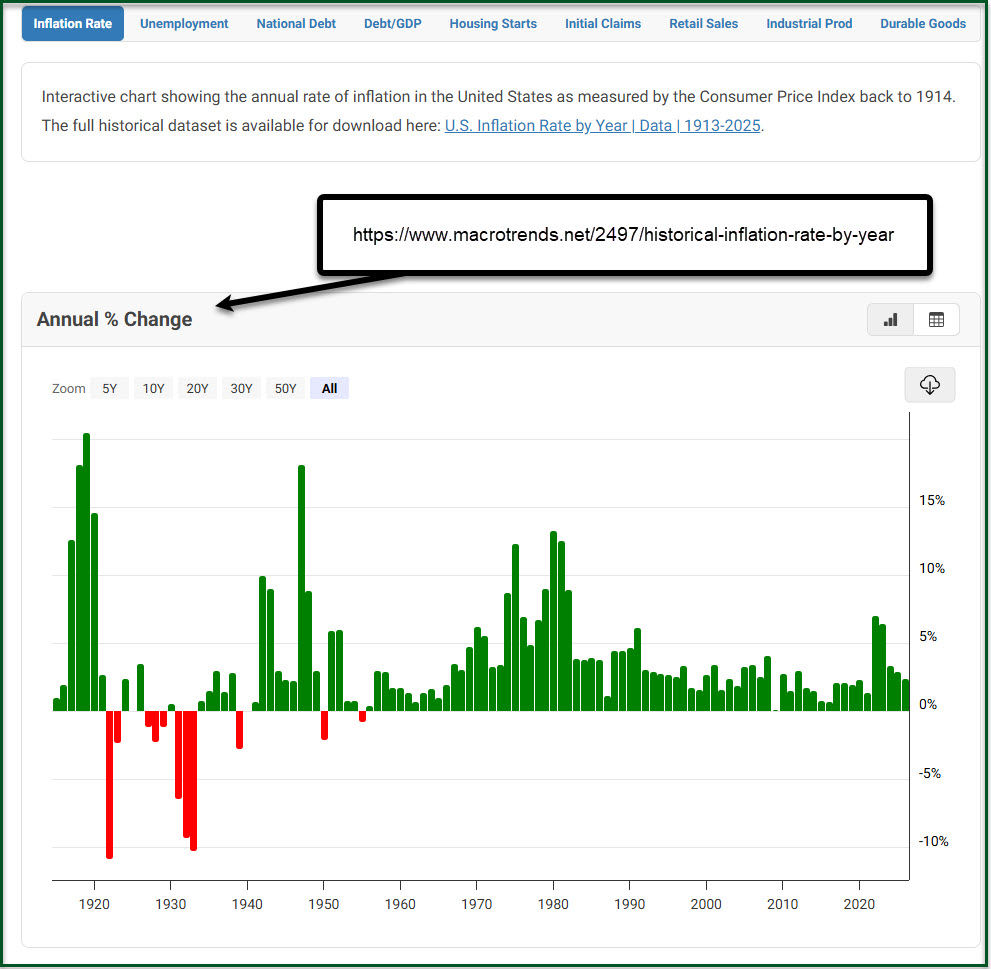 Inflation rarely goes down. The simple reality is that you can expect to pay more in the future for the same things. Some common examples are bread, beef, electricity, gasoline, and insurance. If you don’t want to pay more, then you will buy less – if you can. This should inform your investment choices. Do your investments sabotage your investment returns? In the following graph the green bars show how much less your dollar is really worth over time.
