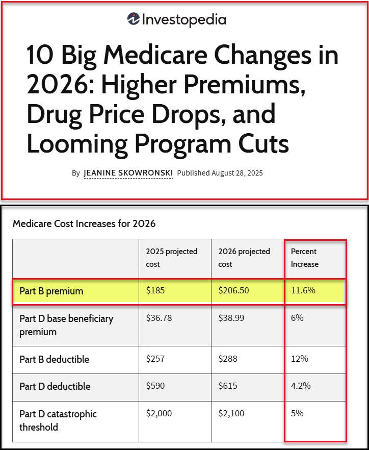 Did you know that Medicare premium inflation for 2026 will be 11.6%? While “inflation” may only result in a 2.7% increase Social Security income boost, the cost of the Medicare health care component significantly reduces that increase.