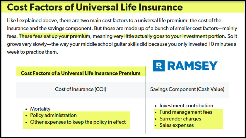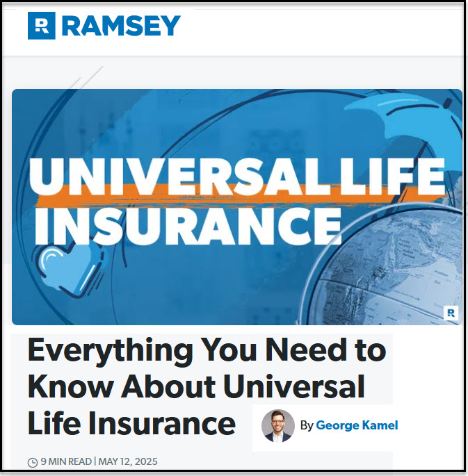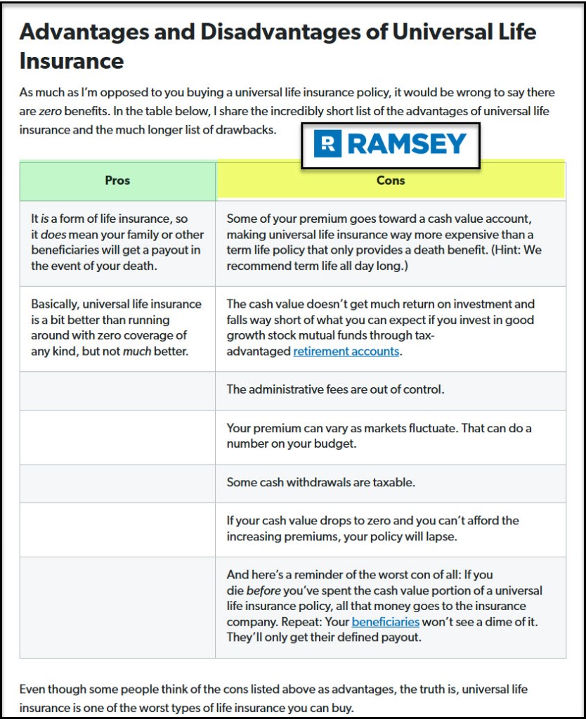 Here are the “Key Takeaways” from the Ramsey article about Universal Life: