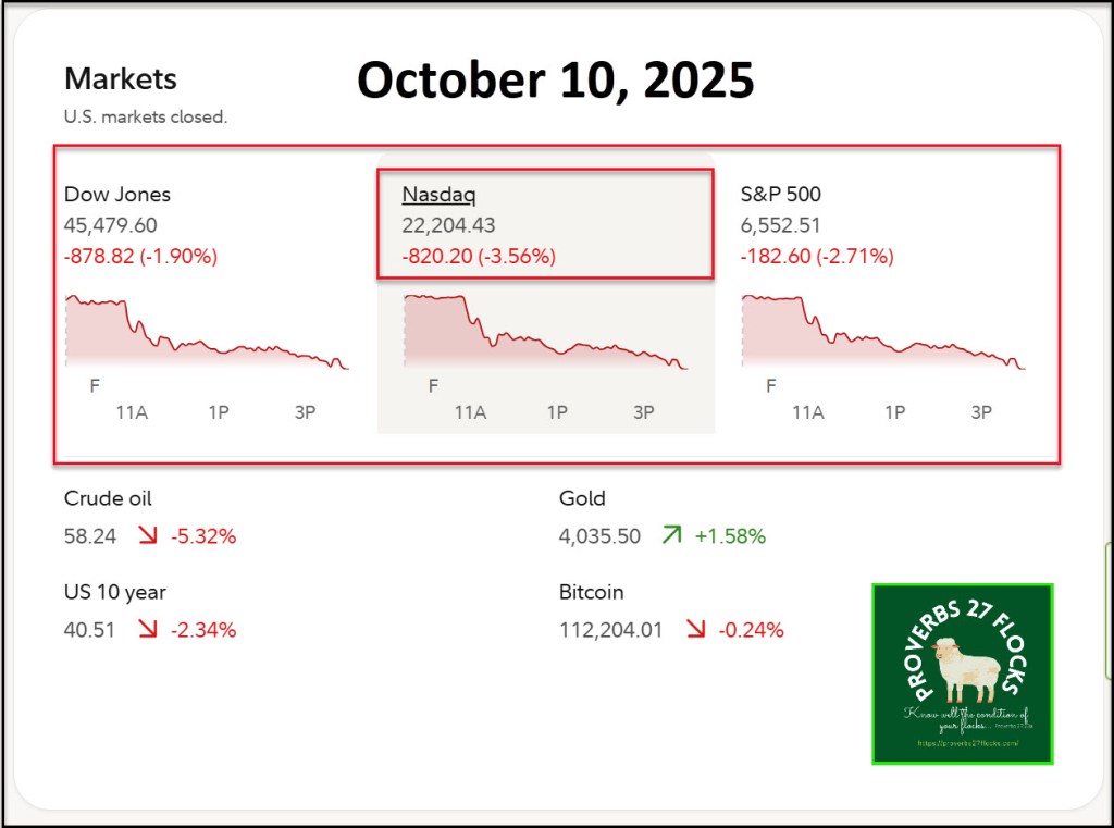 The proper response will continue to be from a forest perspective. Don’t focus on the tree of October 10, 2025. Your forest view can and should include a right view of God, a right view of the temporary reality of life and wealth, and a reasonable long-term approach to investing. When one tree falls in the forest it doesn’t usually mean the forest is doomed.
