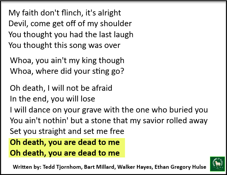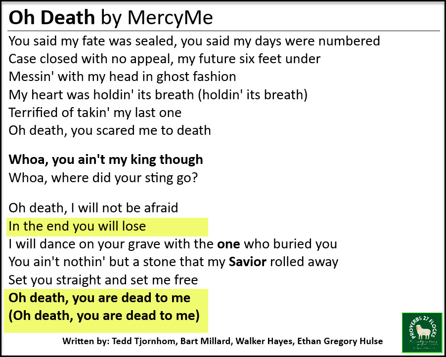 In addition to “His Mercy Is More” there is a song that is from a group MercyMe. The song is “Oh Death.” There is a story behind the song, and you can hear it at this YouTube LINK.
