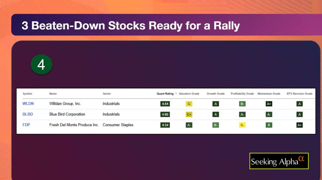 Seeking Alpha, on the other hand, does a lot of education. I recently watched one example of this. The topic was “3 Beaten-Down Stocks Ready for a Rally.” What I liked about the video was that it was both educational, realistic and also included ideas for how to use Seeking Alpha’s recommendations and some cautions about some QUANT ratings that look very enticing.