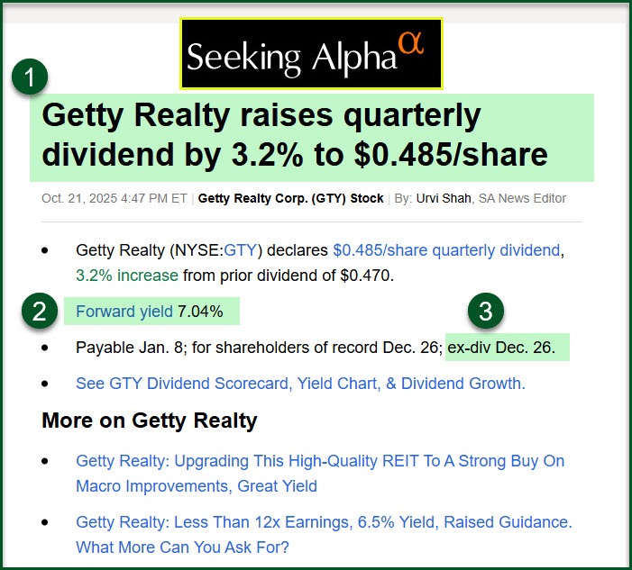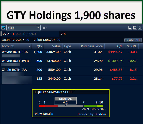 One way to do this is to own shares of GTY. Here is a snapshot of our holdings. As a result, we will be paid more rent because GTY increased their dividend.