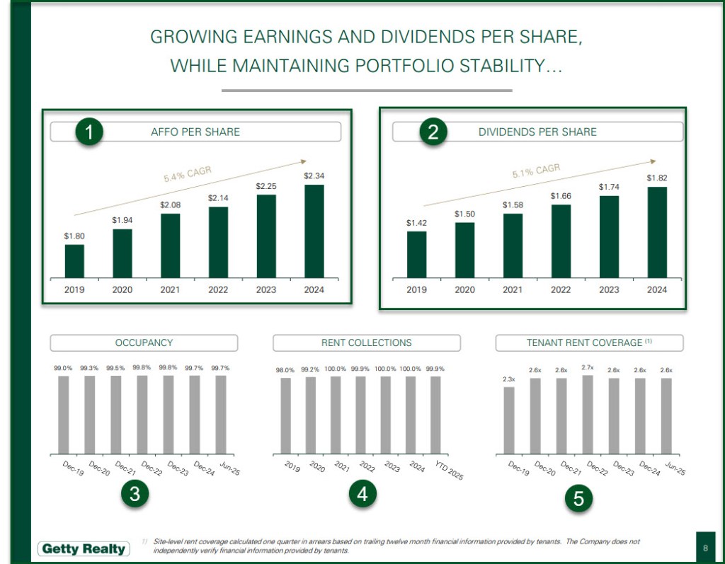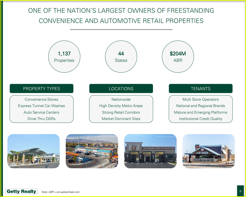 Getty Realty Corp. is a publicly traded, net lease REIT specializing in the acquisition, financing and development of convenience, automotive and other single-tenant retail real estate. As of March 31, 2025, the Company’s portfolio included 1,119 freestanding properties located in 42 states across the United States and Washington, D.C.