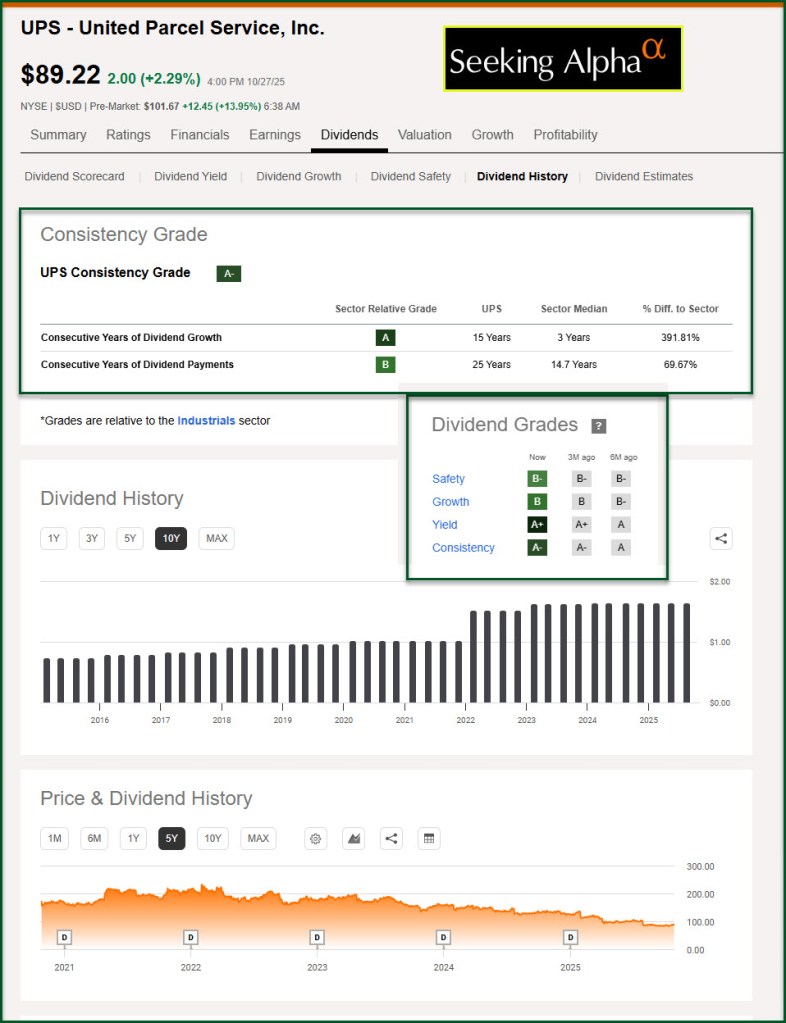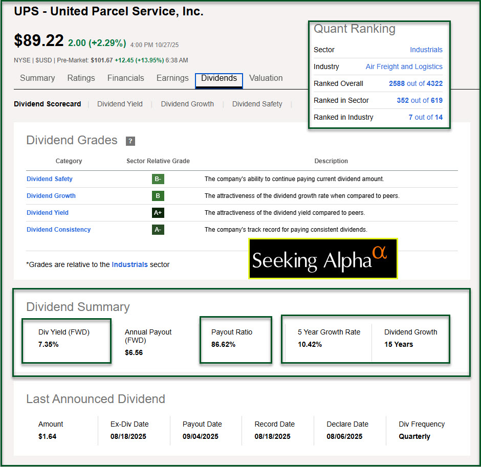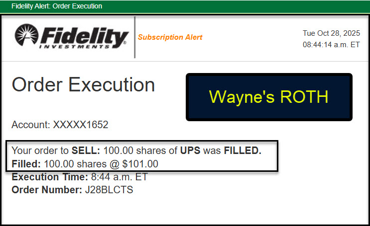 I have several mixed emotions when I see a good earnings report that drives the price of shares higher. I own 200 shares of UPS in my ROTH IRA that I purchased on August 27 for $87.50 per share and on September 3 for $85.15 per share. Therefore, my average cost is $86.33 per share. The premarket price for the shares was running just slightly above $100 per share when I started typing this paragraph. (Update: the shares are now down to $97.40 because some sanity returned to the price per share!)