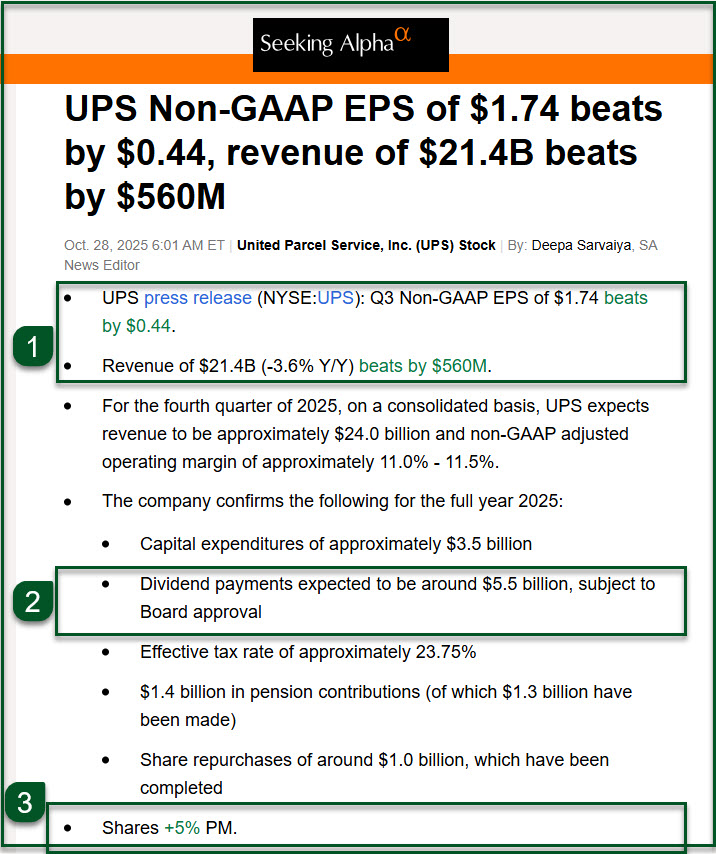 UPS Non-GAAP EPS of $1.74 beats by $0.44, revenue of $21.4B beats by $560M By: Deepa Sarvaiya, SA News Editor