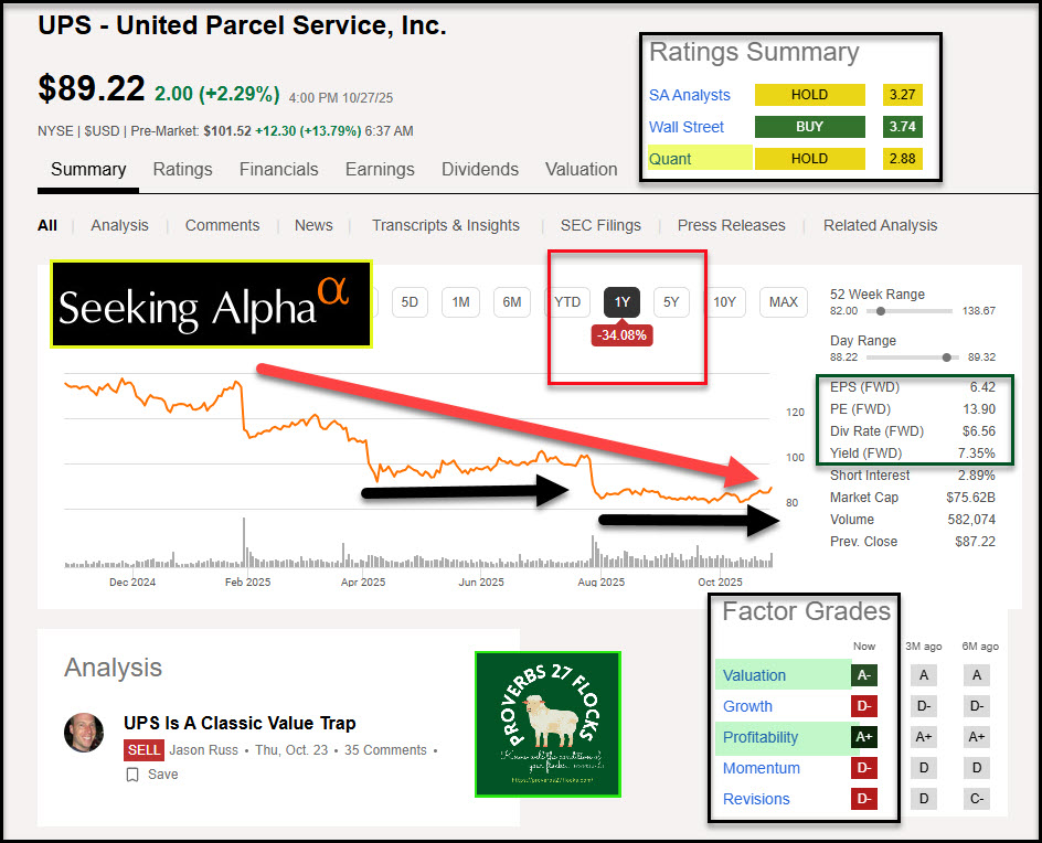 Because the news is good, and the forecast is good, UPS shares are up 12.3% as I write this paragraph. That is a sell opportunity.