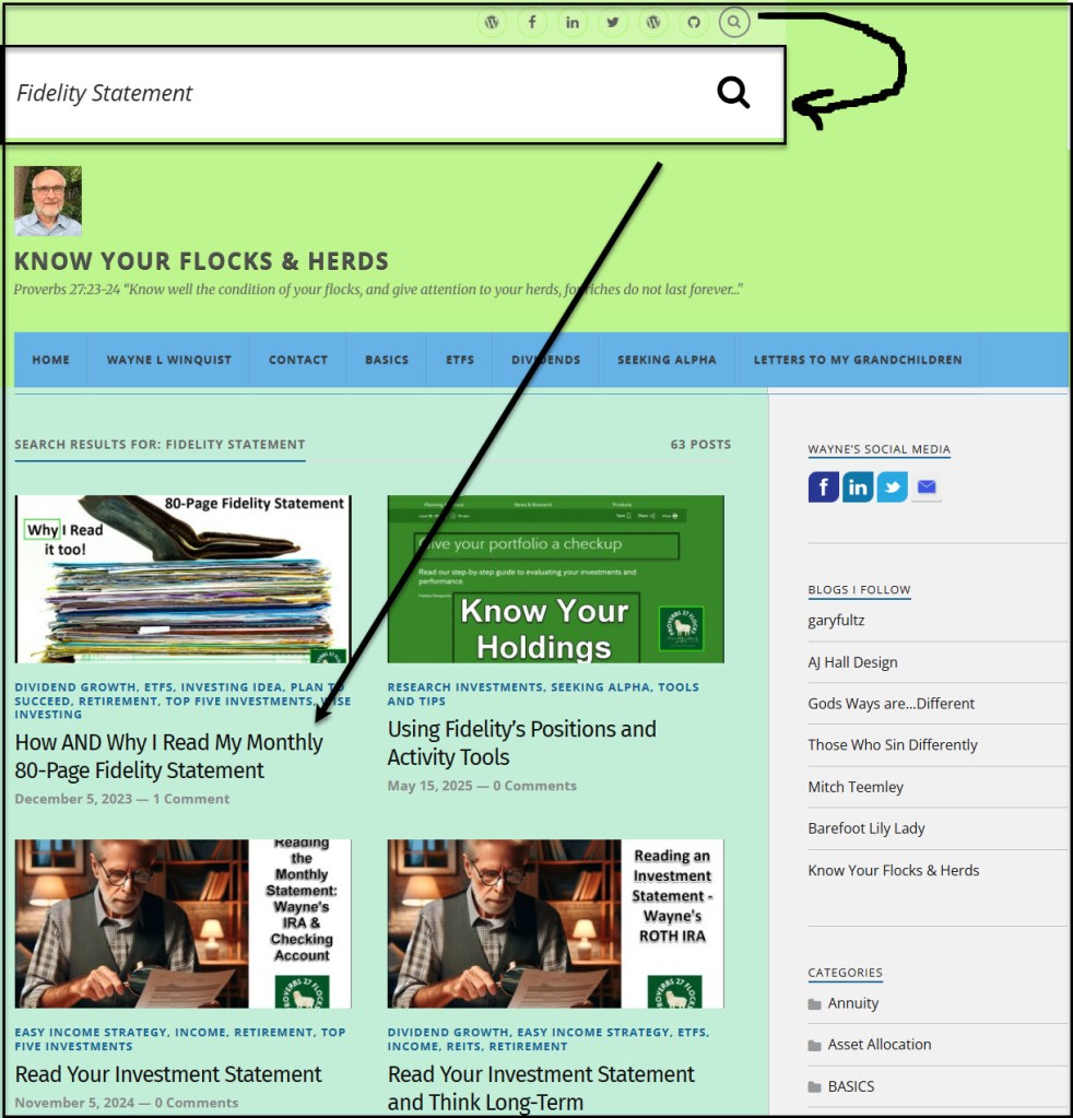 One of my most popular posts was called “How AND Why I Read My Monthly 80-Page Fidelity Statement.” It explains the basics of reading the Fidelity Investments monthly statement. That page has 1,398 readers in the time since it went to press. The only other pages that score higher are the home page and my contact information page.