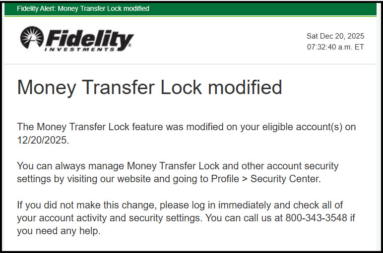 Look for Money Transfer Lockdown and enable it. You can select the accounts you want to lock. I locked the accounts with our larger retirement balances. I did not lock down our cash account which we use for checking and for ATM withdrawals. The balance on that account is relatively small.