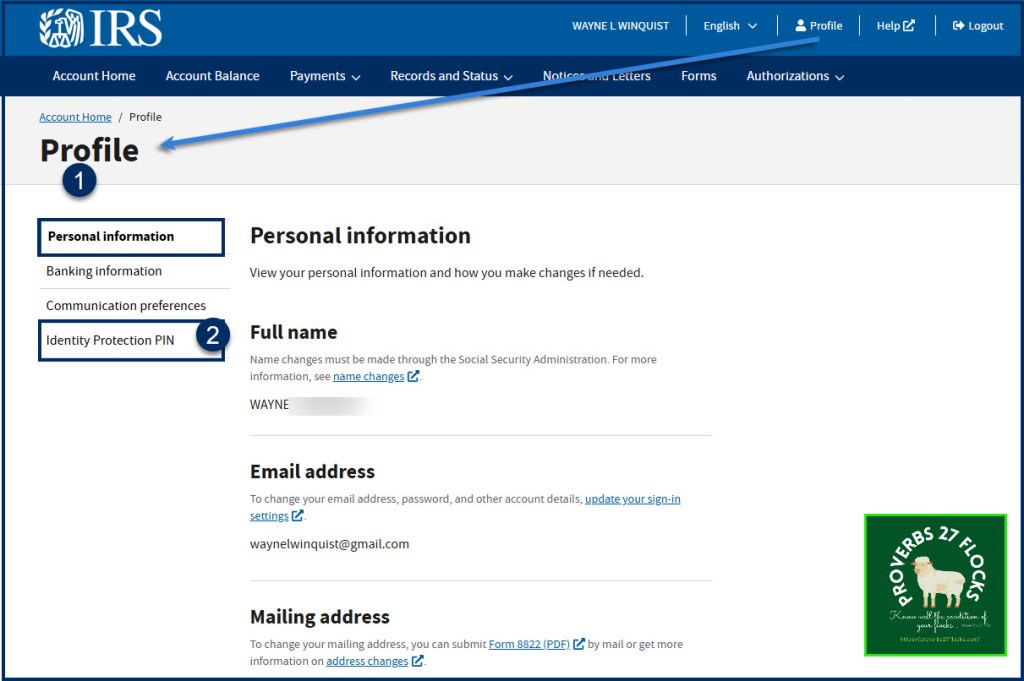 - Logging back into your online account, will display your current IP PIN through the Profile Tab.