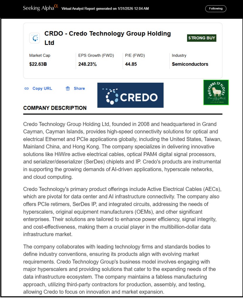 Seeking Alpha Summary Information for CRDO