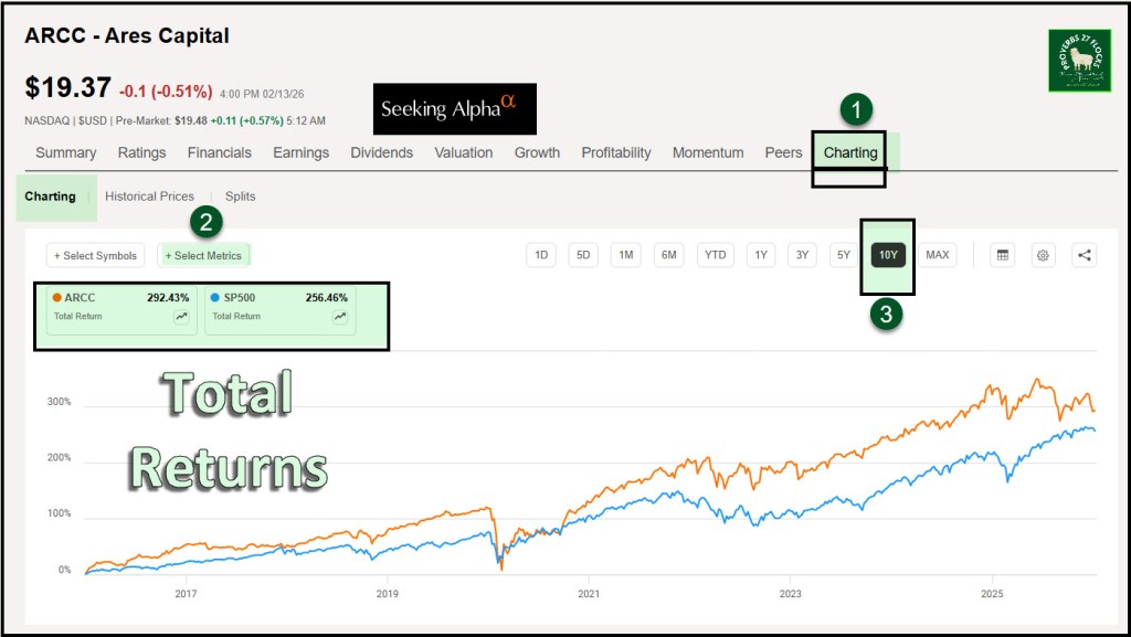 - Investment Growth Example: An initial investment of $10,000 in ARCC would have grown to about $115,634.89 over the 10-year period.
