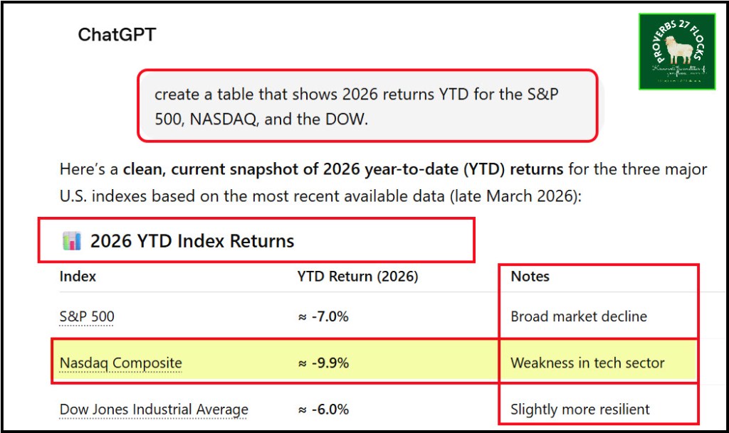 If you have been paying attention, the month of March has been a difficult one for investors with a short-term focus. All three major indices are down. The S&P 500 index is down seven percent. The DOW is down six percent. The NASDAQ is down a painful 9.9%.