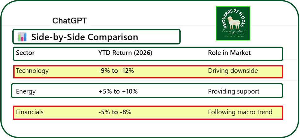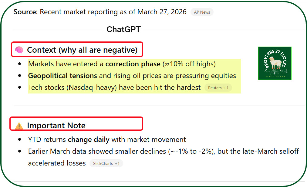 A 5–10% drawdown is normal and happens roughly every 1–2 years. There is something going on this year that is a significantly different. There is the geopolitical shock caused by the war with Iran. This has resulted in a spike in the price of oil and the resultant inflation impacts. Finally, tech stock values were very inflated, and the market eventually adjusts for ridiculous valuations.