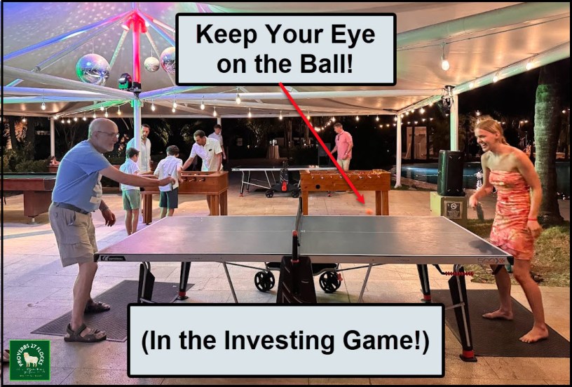 The same is true in the world of investing. Of course, you need to define your “ball” and the “game” plan. For me the investing ball may bounce in crazy ways, but I can keep from doing dumb things with reminders of the game plan. The game plan is easy income. It includes buying quality investments over time and buying more when the market falls.