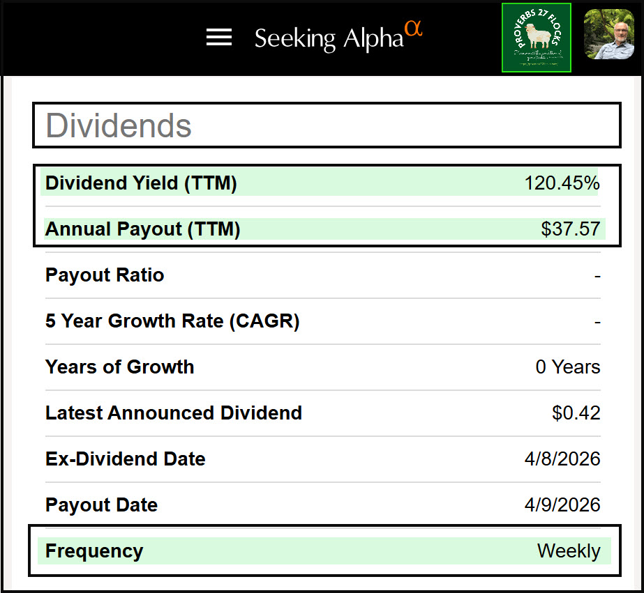 The Dividend is Weekly and the Current Yield is over 100%