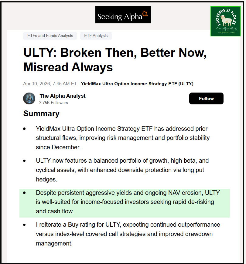 There are many naysayers when it comes to ULTY. It pays to read what they say. However, I think this author has a balanced perspective.