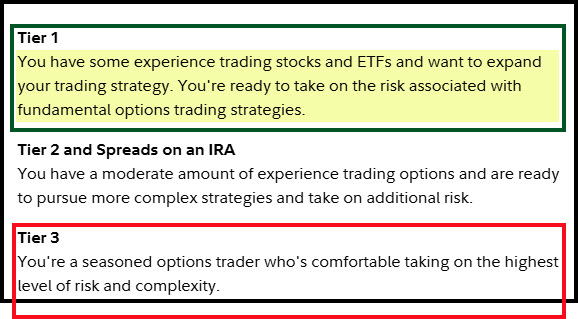 If you want to get started, then I recommend the following: 1) Download the desktop version of Trader+ from the Fidelity website; 2) Request options trading on at least one of your accounts (you must have 100 shares of a stock or ETF that is optionable to trade options.) When you sign up, request TIER 1 trading capabilities. That is sufficient for all of the things you will want to do as a beginner. 3) Reach out to me if you want to learn more.